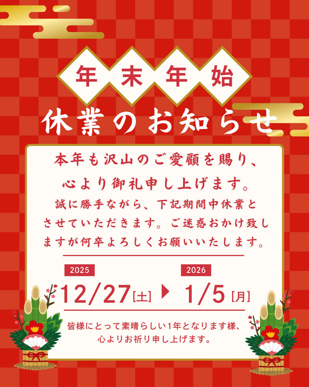 【年末年始休業のお知らせ】